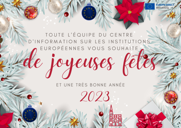 Toute l’équipe du Centre d’Information sur les Institutions Européennes vous souhaite de belles fêtes et une très bonne année 2023 ! Si vous souhaitez passer